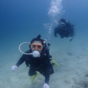 こちらのダイビングショップは、ご夫婦で経営なさっているこぢんまりとしたお店ですが、お二人ともとても人当たりのよく、私たち体験客との距離感も心地よい、素敵な方たちでした。私たちは、奥様の真紀先生がインストラクターについてくださったのですが、お会いしてから短時間のうちに、すぐに打ち解けることができ、信頼して安心して楽しめると、自ずと確信できるような方でした。