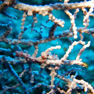 1本目のダイビングは、チービシの「クエフ北」。エントリーからすぐにダイナミックな地形と広大なサンゴ礁が一面に広がっていました。透明度は25m程度と最高のコンディション。平均水深も10m弱だったので、柔らかな陽の光に包まれながら悠々と泳ぐことができ、まさにダイビングの醍醐味である「非日常感」を存分に堪能することができました。水中カメラを持ってのダイビングだったので、シャッターチャンスがあるごとに、ベストの撮影個所へ誘導してくれるなど、じっくりカメラ撮影も行うことができました。