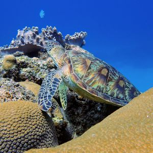 『海洋生物の宝庫』とも呼ばれる沖縄の海は、その名の通り様々な海の生き物が生息しています。ビーチの浅瀬では、カクレクマノミをはじめとした数多くの熱帯魚やサンゴ礁のほか、スポット次第ではかなりの高確率で自然のウミガメと一緒に泳ぐことができます。そのなかでも特に人気の高い「マンタ」「イルカ」「ジンベエザメ」は自然ではなかなか遭遇することか出来ない(見られない)ため、アクティビティ主催会社への参加申し込みがおすすめ。一生に1度、海の生き物に出会うかけがえのない体験をしませんか?