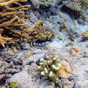 今回のダイビングで出会った魚は、パンダダルマハゼ、コブシメの卵、アカヒメジ、アカマツカサ、グルクンの群れ、ハマフエフキ、ピグミーシーホース、ヤガラなど。また、可愛らしいアオウミガメにも遭遇することができました。魚の種別に疎い自分でも、ダイビング終了後にインストラクターが親切に解説してくれました。