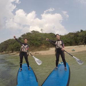 あり初挑戦でスタンドアップパドルボード体験ツアーを決めました。スタンドアップパドルボードは、海上のクルージングを中心に、色々な楽しみ方を体験できます。パドルを漕ぐのに慣れてくると水上でバランスが取れて、カヤックとは違った感覚で水上を移動する楽しさを味わえます。また、水の透明度が高い場所なら、水中を泳いでいる魚をボードの上から鑑賞したり、サーフィンやボディボードと比べ目線が高いため、海上で今までに見たことのない世界を体験することができます。初めは座って行い慣れたら立ちますが思った以上にバランスが難しいですが