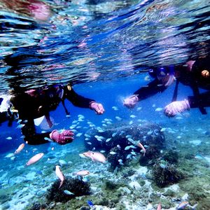 はりきって申し込んだものの、私自身 海に入るのは とても勇気がいることでした。現在51才、4年ぶりの二十歳の息子達との家族旅行でこの先シュノーケルの体験ができそうな機会が何度訪れるのかと考え 申込む決断をした次第です。がんばって決断したのに、主人は参加にうしろむきで、当日朝までムカついたりしましたが、お迎えにきて頂いたガイドさんが、行きの車の道中で いろいろ話をしてくださり、緊張してますって伝えても受け止めてくださり、シュノーケルはじまるまで夫婦でドキドキでしたが、無事シュノーケルすることができ、お魚にも餌をあげたり、素敵な体験ができました。双子の息子達も参加してよかったといってました。そして、参加後すぐに写真もメールで送ってくださり、大変感激しました。迷ったら、ぜひ参加するべきです。また、ホテルまで送迎いただき、大変ありがたかったです。この度は、大変お世話になりました。