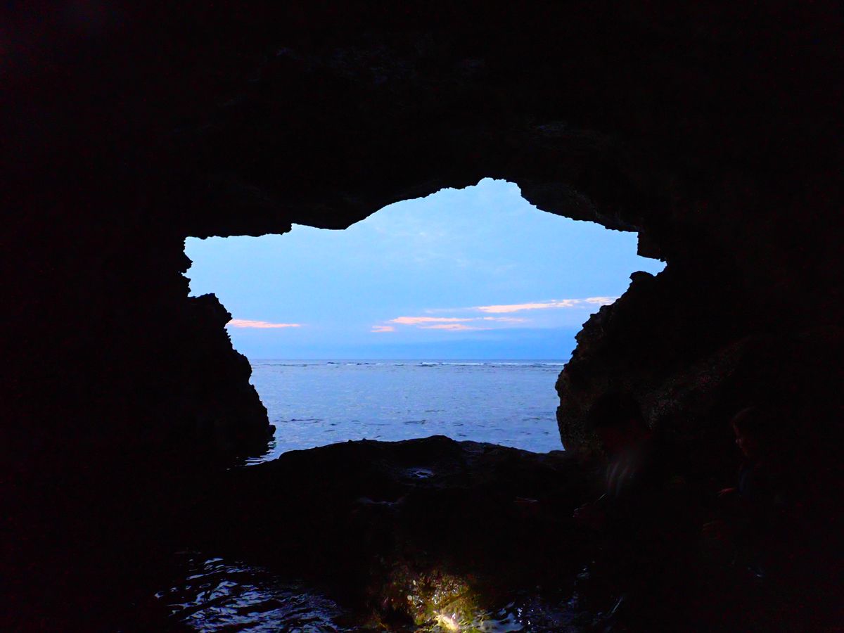 レクチャーを受けてから洞窟までは浮き輪につかまって引っ張っていただいたので水中を眺めているうちに洞窟に着きました