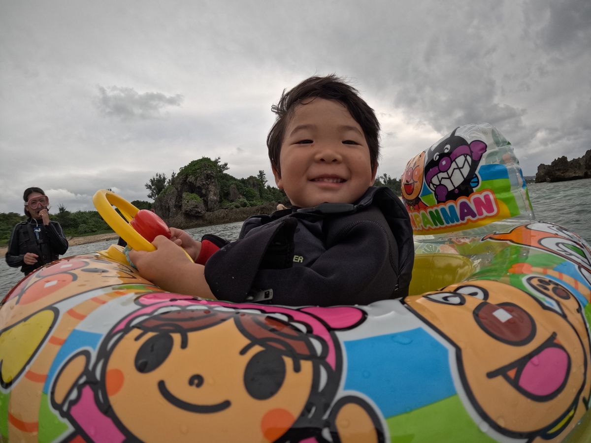 いろんな色のお魚を見て、ぷかぷか海にういて餌やりをしたりと、とても楽しかったようで、最後も海からあがりたくなく、だいぶ粘っていました。笑
