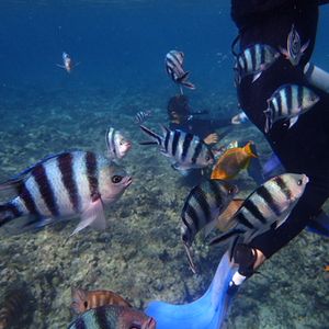 海に潜って、魚が近くまで来てくれてさらにテンション上がる!!!
