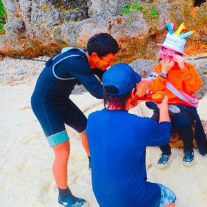 SUPを初めてやる人ばかり、8歳から70歳まで家族7名で参加してきました。子供は大人と一緒に乗り楽しいひと時を過ごせませた。ヨッシーさんの人柄も指導もよく70歳の母も立って乗ってしまいびっくり!?子供達も大喜びでした!あっという間に時間が経ってしまった感じです。写真も素敵にたくさん撮ってくれて嬉しい限りです。また沖縄に遊びに行った際にはぜひお願いしたいです!