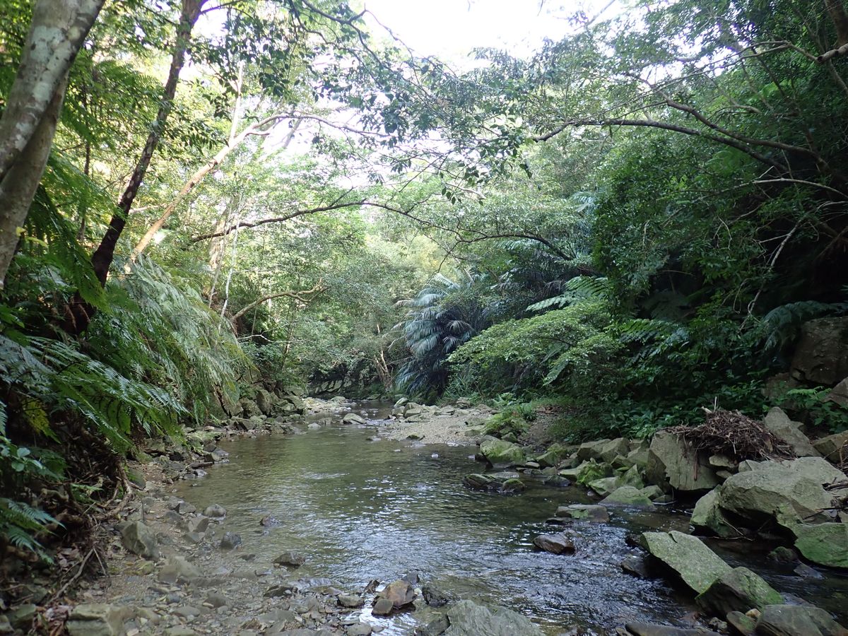 滝を目指すには川を登るのですが、清流で穏やかな山の中という雰囲気でした。ウェットスーツ+気温23度くらいだったので3月でも川の冷たさが気持ちいい感じでした。川にいる生き物や植物を見ながらゆっくりと上流へ。うなぎを捕まえようとしたりエビを釣ろうとして遊びながら行きました。全て失敗しましたがw