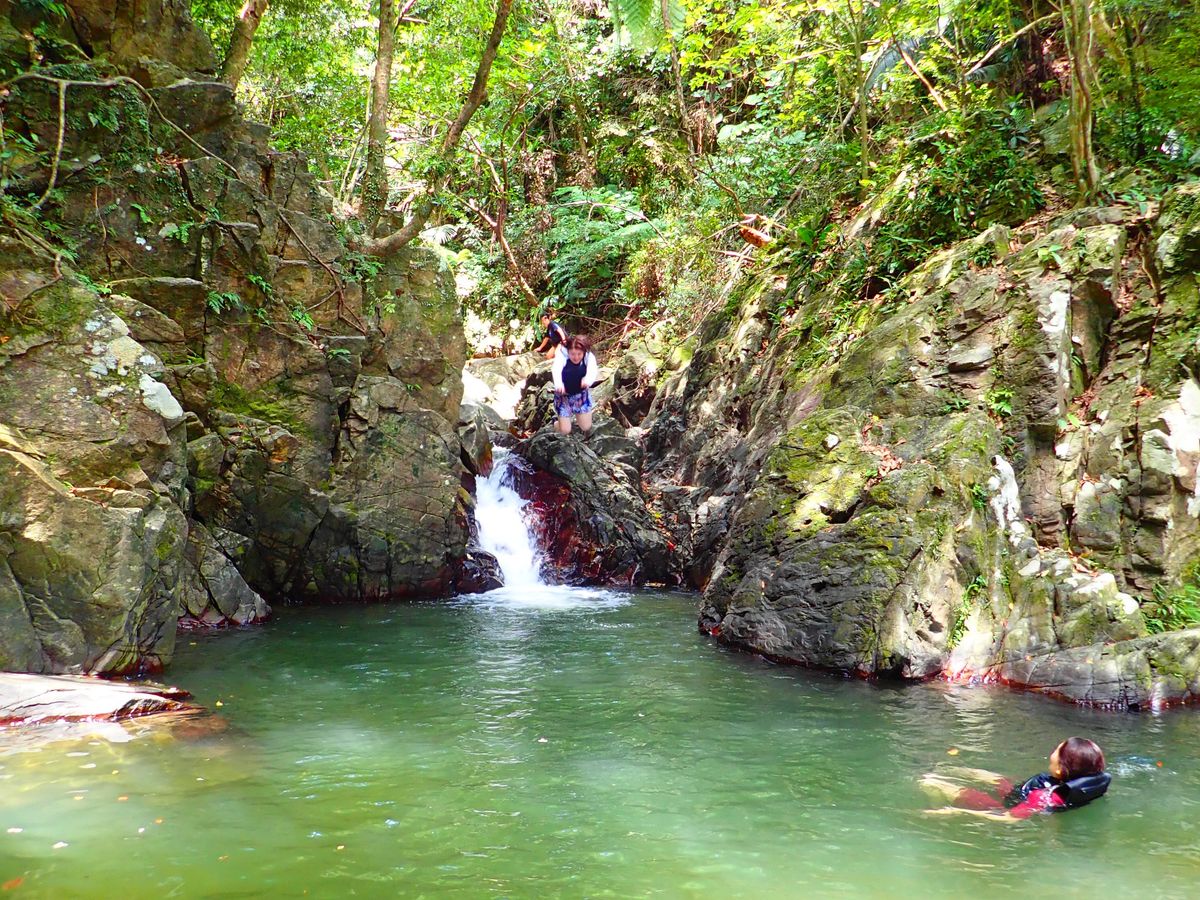 南国の川の中を歩いて滝まで行くという、普段なら絶対出来ない体験をさせていただきました。