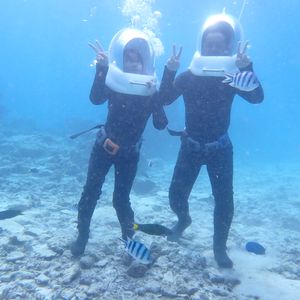 シーウォークに参加しました。従業員さんはどの方も優しく、事前の説明をしてくださったり、シーウォーク中は楽しく声をかけてくださったりして、安心して体験することができました。天気にも恵まれ、思い出に残りました。次は他のアクティビティにも参加したいです。