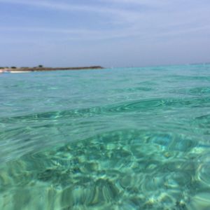 エメラルドグリーンの海から海底を除くと、すごい透明度で、空に浮かんでいるような感覚。