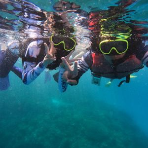 シュノーケリングはライフジャケット着用のため、初心者でも泳げなくても大丈夫です。