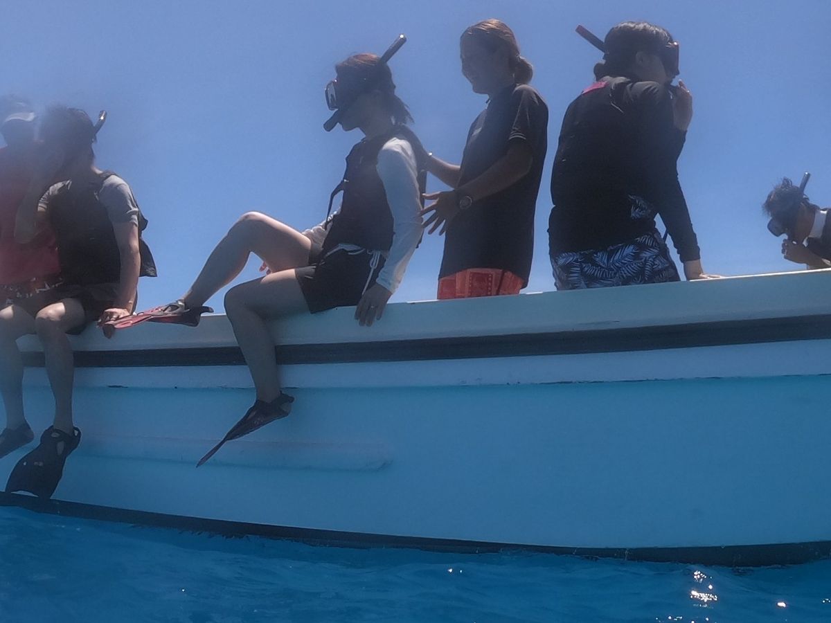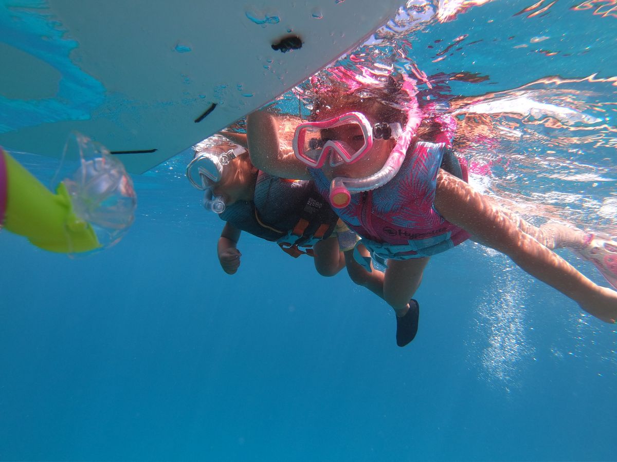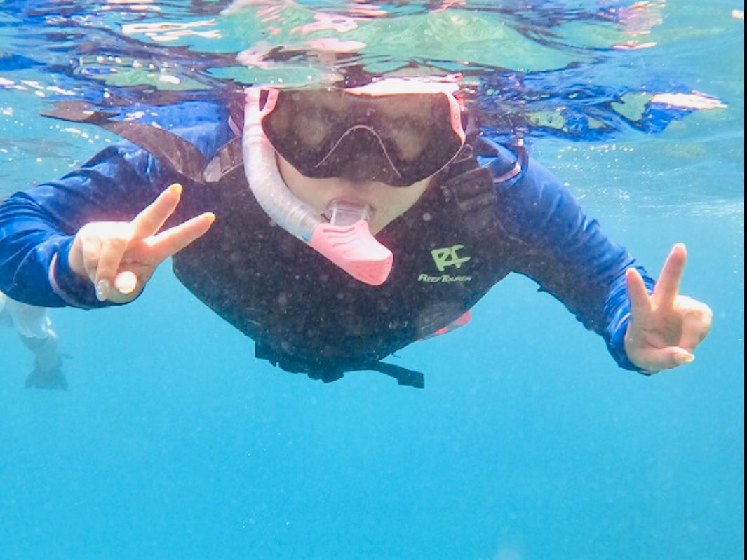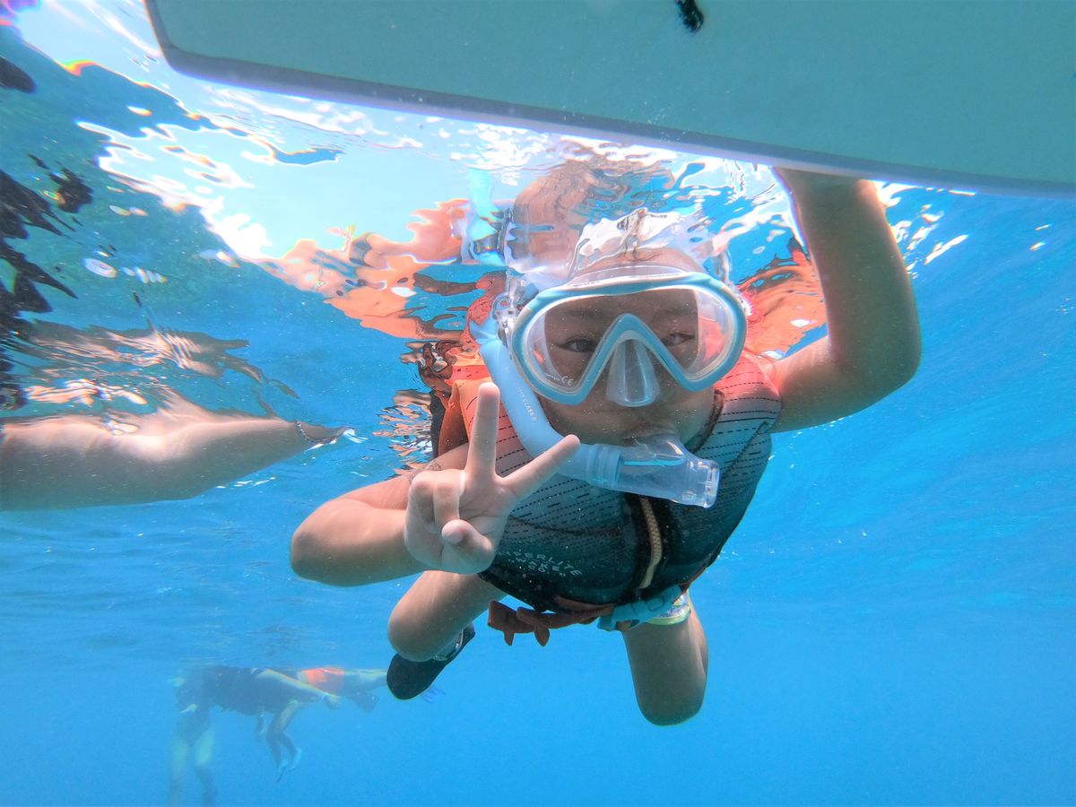 ですが、そんな中時間が来てボートシュノーケルに参加すると、最初は怖がっていましたが、ツアーのお兄さんがずっと付きっきりで対応してくれ、ついに海でのシュノーケルができるように!