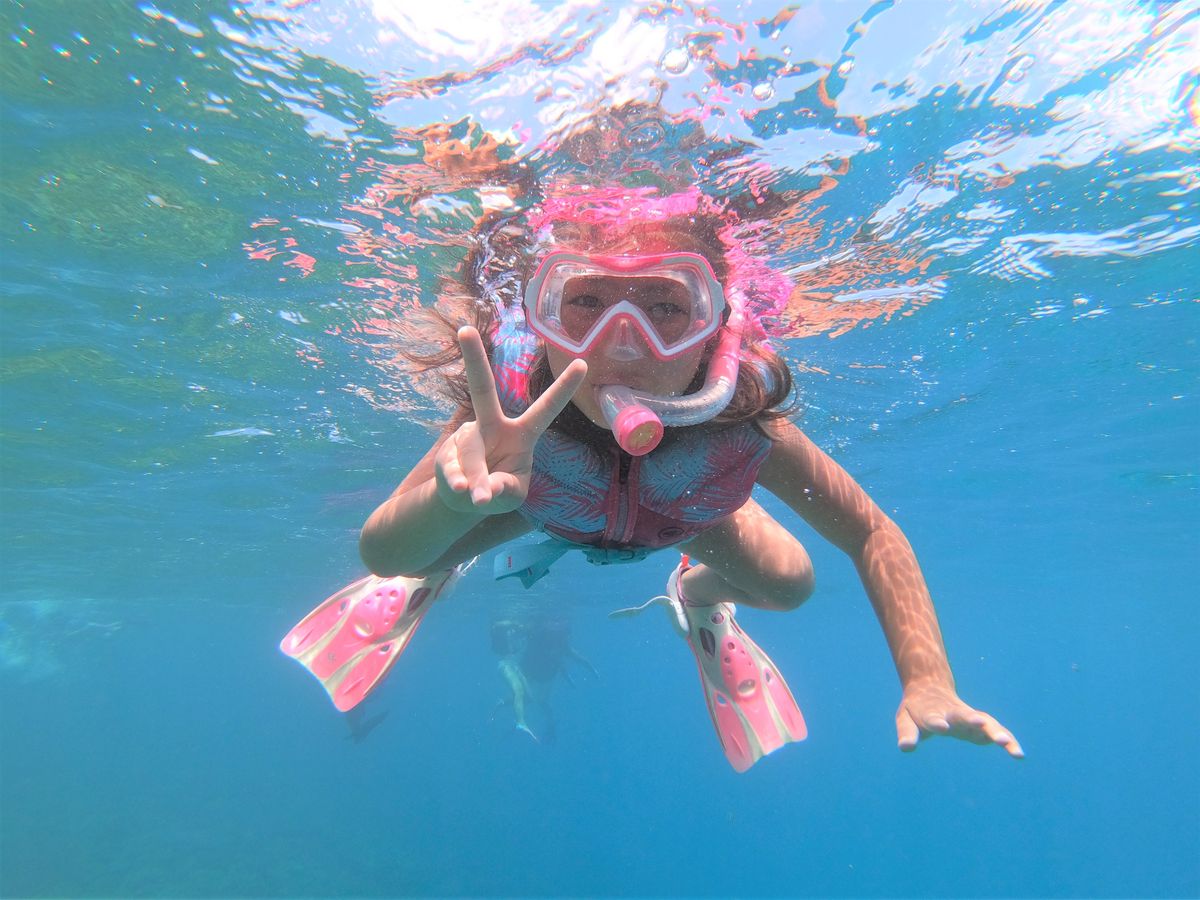 我が家の6才の子はシュノーケリング初めて。たくさんの魚を見れて、沖縄旅行で1番楽しかった経験だったと言っています。