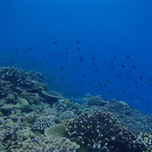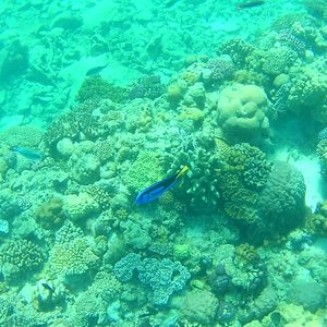これぞ、南国の海、魚にサンゴ、透明度サイコーです。