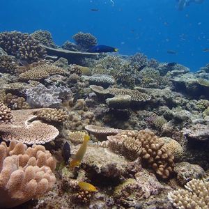 近くのポイントでもたくさんの珊瑚やお魚が見れ、とくにゴリラチョップは