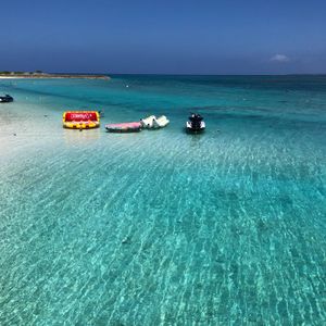 人気があるため、かなり混雑しました。海は穏やかで本当に透明度抜群です。始めにスケジュールを渡され、アクティビティ以外は自由。滞在時間もちょうどよく、追加のマリンスポーツも半額嬉しいです。係りの方も色々配慮して頂き感謝です。シュノーケルの係りの方、あんまり魚の知識はないようで少し残念でした。ランチは、指定店で700円の物から選べ、それ以上のものは差額支払いで対ok。シャワーは、やっぱり30分は並びますので、お早めに。1分100円。写真のサービスやタオル付きならいいのにな。