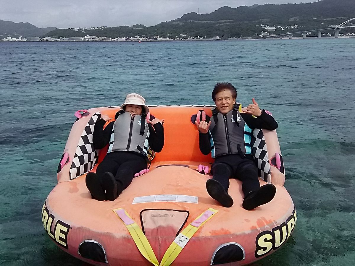 6年前に修学旅行で沖縄に来たのですが、マリンスポーツを体験できなかったメンバーでモニターツアーを利用しました。1時間で3種類のアクティビティを体験しました。初めての体験でしたが、少しのスリルと大きな躍動感を得ることができました。途中でインストラクターの方が、スピードが速すぎないか、疲れてないか気遣ってくださったので、安心して乗ることができました。また、一緒に行った友人が防水カメラを持ってきていたので、インストラクターの方がジェットスキーを運転しながらアクティビティの様子を撮影してくれたので、海の上の写真も残すことができてよかったです。冬の海はとても透き通っていて、より一層楽しめました。他に海に入っている方もおらず、貸切状態だったので、沖縄といえば夏のイメージですが冬の沖縄もおすすめです!