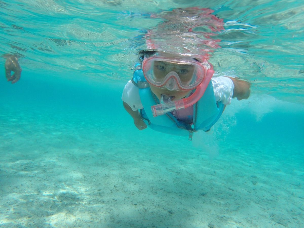 ボートで行くシュノーケリングスポットではライフジャケット着用が義務づけられていて素潜りできないのが残念。