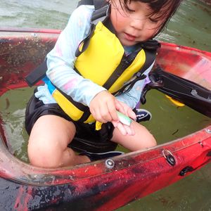 5歳の子も一緒でしたが、子供の扱いに慣れたこうちゃんがガイドでしたので、安心して任せることができました。子供に慣れているガイドを付けるという心遣いがいいですね。カヤックを漕ぐだけではなく、途中で上陸して岩場や浅瀬の観察も、ちょっとした休憩になってよかったです。子供が漕ぐのにこうちゃんが合わせてオールを動かしてくれる様子がとてもよかったのですが、写真に撮る事が出来なかったのが残念です。