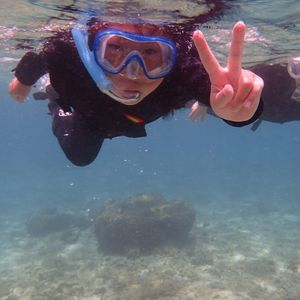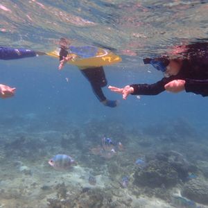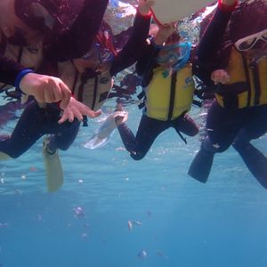 シュノーケリングは、子供が初体験で、プールで泳ぐのとは違い、フィンやシュノーケルを上手く使いこなせず、悪戦苦闘していました。しかし、インストラクターの方が良くしてくださり、最後まで楽しめました。水中から記念撮影してくれたり、バブルリングを作ってくれたりと、色々楽しませてもくれました。