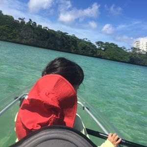 レンタカーの受付に時間がかかってしまい、集合時間に遅れてしまいましたが、予定通りクリアカヤックに乗れてとても楽しい時間を過ごせました。写真も思っていた以上にたくさん入っていて、帰宅後も沖縄のキレイな海を思い出しながら見ています。餌付けも沢山の魚が寄ってきて面白かったです。ありがとうございました。