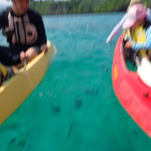 餌やりも出来て、海の中よりも怖くないし、カヤックでも陸での生き物や、魚の説明などなど、カヤックだけでなく沖縄の海のことがたくさん学べました(^ω^)♪