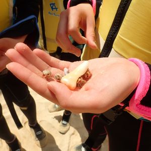 昨年も参加しましたが、あまりにも楽しくて今年も参加しました。こまめに写真も撮ってもらえ、色々な海の生き物の話も聞けました。特にやどかりが、貝の中に入る所を見れたのは感動!