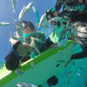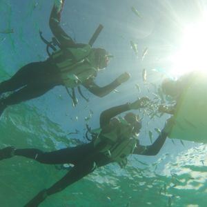 あいにくの引き潮でやや濁った海ではありましたが、シュノーケルでもたくさんの魚を見られ、餌付けも楽しめ、大満足のプランとなりました。