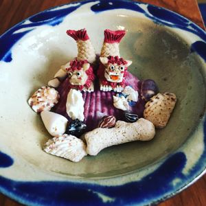 写真も添えて頂いて、やちむんのお皿の中にシーサーとともに珊瑚、貝殻が詰まっていてとても素敵です☆