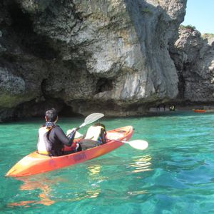We took a 2-hour kayaking adventure along cliffs near Malibu beach provided by Aruguide. We enjoyed the activity very much thanks to Ryan who was our energetic instructor with expertise on kayaking in Okinawa waters. This was a bonus to us as we never expected to have an English speaking trainer whom we could communicate at ease since we don't speak any Japanese at all.