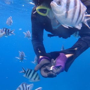 5歳の子供連れで、カヤックもシュノーケリングも不安でしたが、イケメンインストラクターの方に丁寧に教えてもらい、子供も楽しくツアーに参加することができました。シュノーケリングでは子どもも、ビート板を持ってでしたが、フィンとマスクをつけて、餌やりもやらせてもらえました。