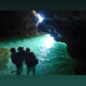 あいにく曇り空ではありましたがその分洞窟のブルーはきれいに見えましたね。潮も満ちている時間帯だったので洞窟内でも楽しむことが出来てよかったです。