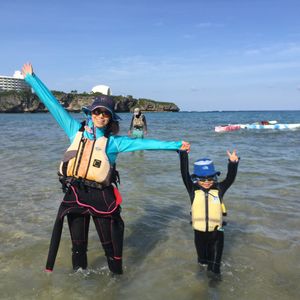 シュノーケリングも沖縄の綺麗な海底を見ながら可愛い魚たちと一緒に泳ぐ事ができて、最初は怖がっていた娘も思いきって海中を覗いた瞬間の魚達に魅せられて、気がついたらシュノーケリングでも上手に呼吸できるようになっていました!