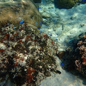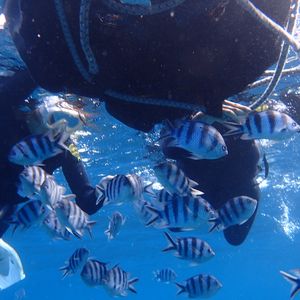 友人との卒業旅行でツアーを利用させていただきました。私はもともと泳ぐのが苦手で不安な気持ちでツアーに参加しましたが、泳げない参加者はビート板を使いながらシュノーケルをすることができたのでとても安心しました。ガイドさんに引かれながらシュノーケルをしているとだんだん慣れてきて、ビート板なしで1人で泳ぎながら魚に餌をあげることができるようになりました。初めて海の上で泳ぐことを楽しむことができ、最高の思い出となりました。また機会があれば参加したいです。