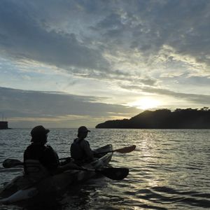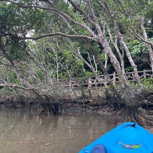 当初、予定していたサンセットツアーは大雨のため中止になったため、翌日の午前中のツアーに変更していただくことができました。カヤック初体験しかも運動神経鈍いのでドキドキでしたが漕ぎ方を教わり実際に乗っているうちにコツもつかめました。当日は全員2人乗りカヤックでした。多くのマングローブや古いガジュマルの神秘的なお話など…特にキジムナ(精霊)のお話はとても興味深いものでした。シロサギ、クロサギにも出会えて大満足です。お尻がビショビショになります。更衣室もありますし、滑り止め付のサンダルもお借りできます。所々で写真も撮っていただけました。