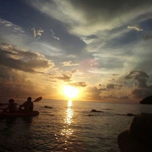太陽が沈みかけた夕暮れ時の海へ、シーカヤックに乗って出発です。徐々に水平線へと落ちていく夕陽を眺めながら、ゆっくりと漕いで進みましょう。夕焼け色に染まった海面はなんともいえない美しさです。