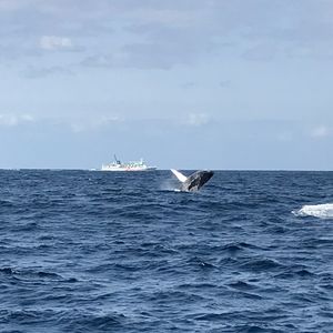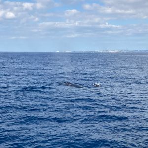 野生の生き物なので会えないかもと思い参加していましたが、クジラに会うことが出来ました!少し遠めからの観察でしたが、尻尾やブローを見る事が出来てとても良い経験でした。運がよければもっと近くで会えると思うのでトライの価値はあると思います。心配していた船酔いも酔い止めが効いて大丈夫でした。スタッフの方々も親切でしたし、写真のサービスも嬉しかったです。ありがとうございました!