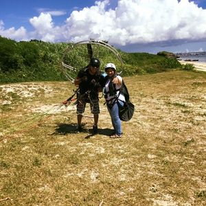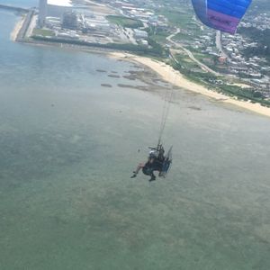 モーターパラグライダーで美しい海を眺めながらの遊覧飛行!エンジンの力で高度調節は自由自在!扇風機のようなエンジンを背負ってビーチなどの平地から飛べる、手軽な空のアクティビティーです。自由に空を飛びながら、空からでしか味わえない沖縄の青い海や海岸線をお楽しみください。気分爽快で感動を味わえる、一生忘れられない旅になることでしょう。 開催場所は中城村と南城市の2箇所をご用意。中城村は那覇市内から40分ほどで、外国人住宅があり、おしゃれなカフェが点在する北中条近く。南城市はおきなわワールドや斎場御嶽が近いので、南部の観光のついでにお立ち寄りいただけます。