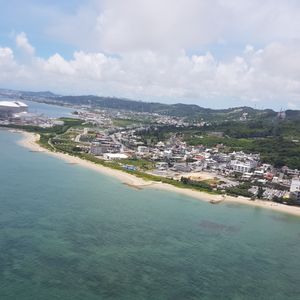 天候にも恵まれ、空から見る沖縄の海は子供にとって大変いい思い出