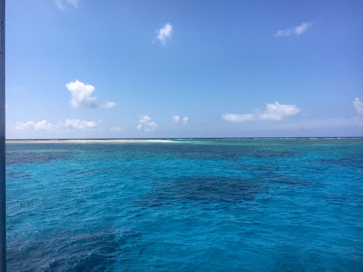 出航してしばらくで、絵の具の色みたいな海に到着!
