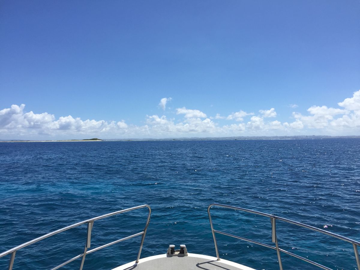 慶良間諸島に向かうまでのおよそ20分のクルーズも潮風が心地良く、上空の飛行機を眺めながら優雅な気分になりました。