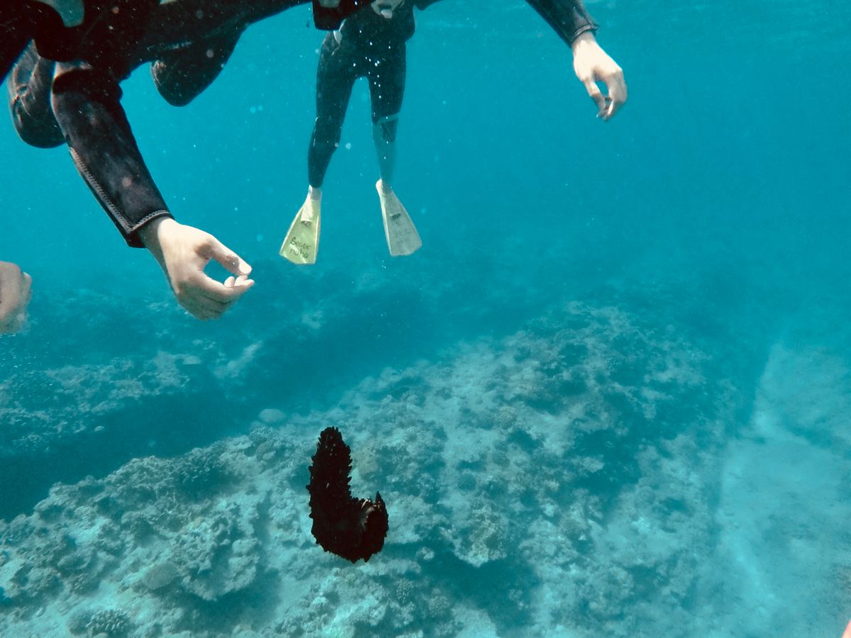 基本的に自由にさせてくれました。放置という感じではなく、サンゴやなまこを拾って渡してくださったり、気にかけてくださっていました。