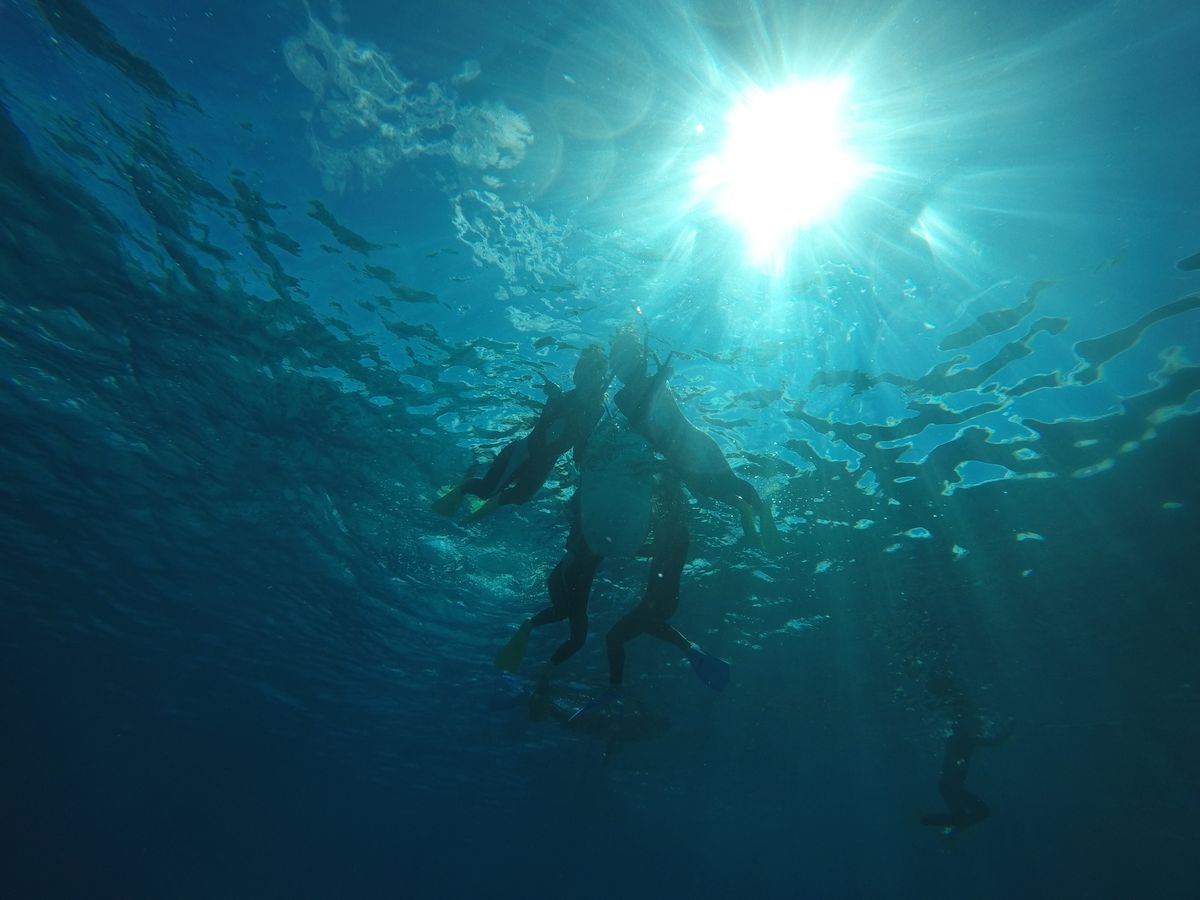 海の中では、真下を見るのではなく斜め45度を見ると息継ぎの時に水が入りにくいということで、シュノーケリング中は水を飲んでしまう事なく泳げました。