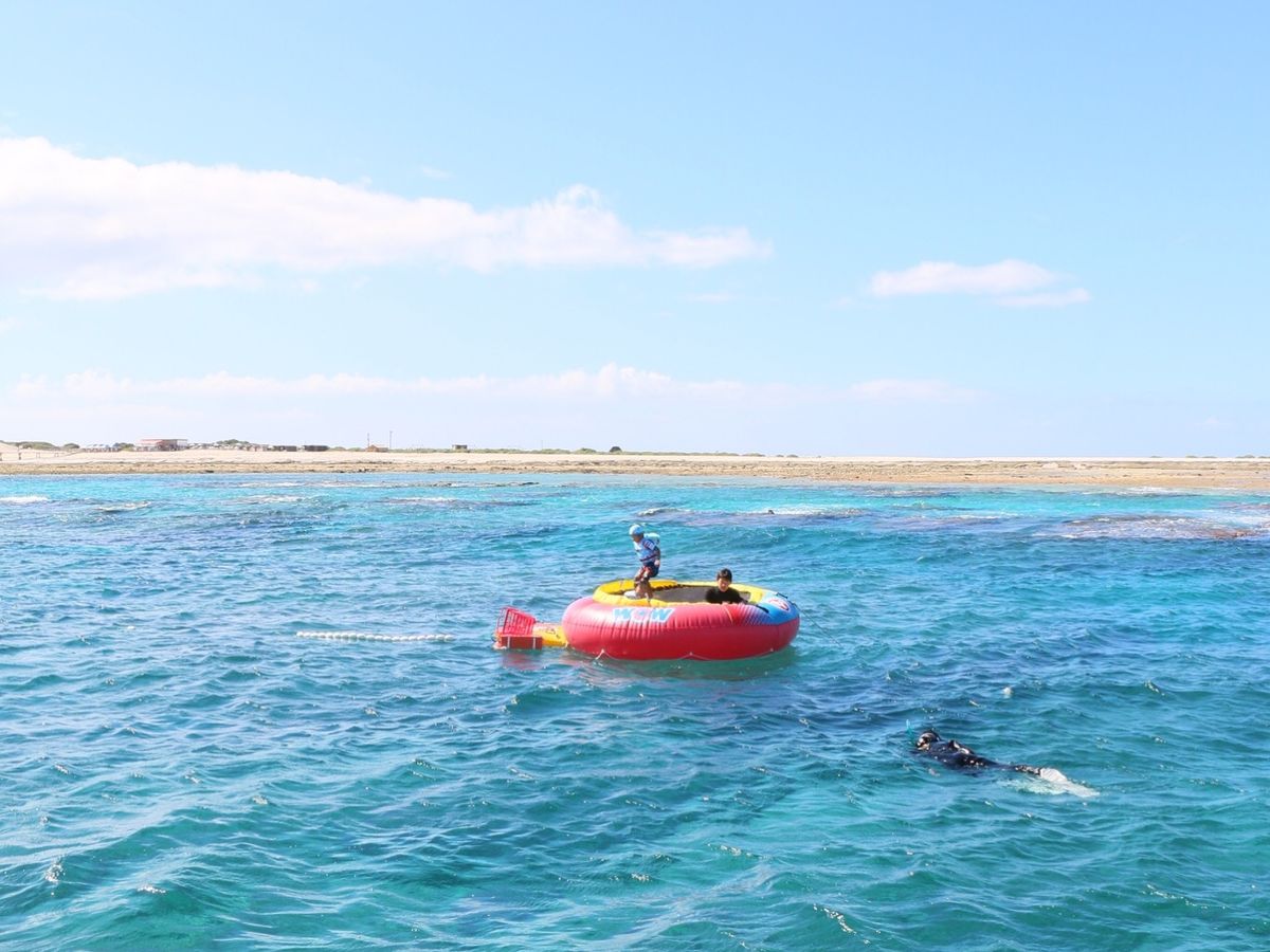 ガイドのお兄さんがお魚の説明をしてくれたり、疲れたら浮輪につかまる事ができたので安心して楽しめました!船に戻っての休憩も自由でした。お茶飲み放題、バスタオル貸出、海からあがったら船内で温かいシャワーを浴びれたので帰りも快適でした。