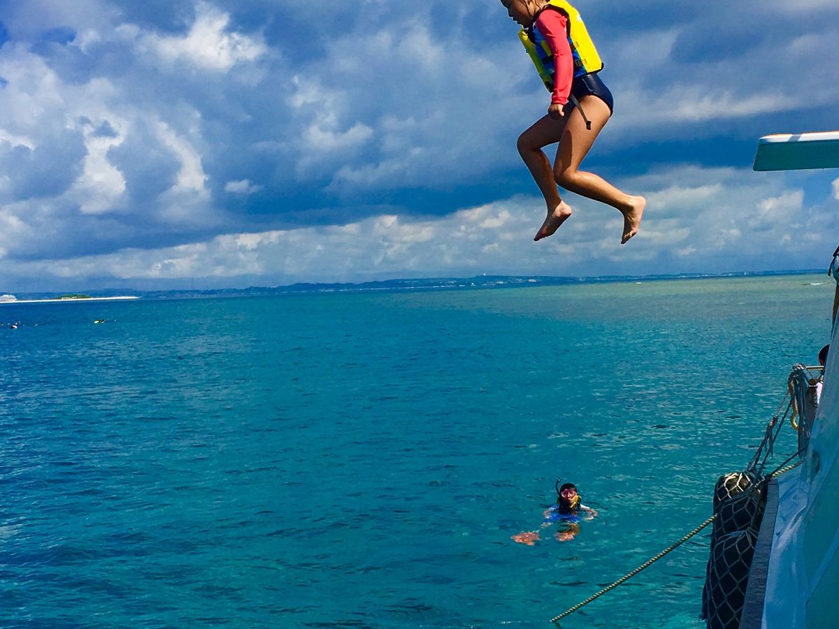 ボートからのジャンプは意外と勇気がいると思いますがジャンプをする勇気すごいです!