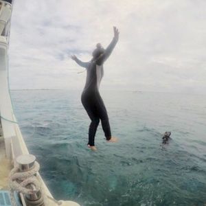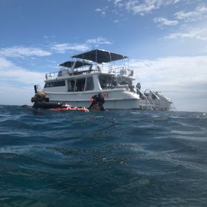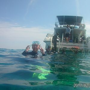 シュノーケル半日でした。注意事項などの説明が船上で紙芝居を見せられたのでそこで船酔いが。シュノーケリングは深い海の上からのみ。ダイブしている人は良いがシュノーケルでは魚やサンゴは遠すぎて見えず。船内に女性スタッフがいない。