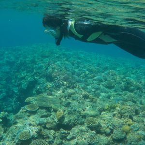 元々雨の予報でしたが、何とか雨も降られずに半日シュノーケルすることができました!水も透明度が高く、魚がたくさん見れました!半日では物足りなく、終わりの時間が来てもまだまだ海を見ていたかったです!本当に最高の時間を過ごすことができました!さらに、友達が翌日誕生日だったので、伝えておいたらサプライズで写真をいただくことができました!最高のスタッフさんに出会えてよかったです!本人もとても喜んでいました!ありがとうございます!また参加したいと思います!!