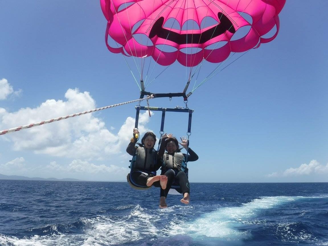 パラーセリングは、高いとこが苦手な私は最初ドキドキでしたが、実際やってみると全然怖くなく、景色がキレイで最高でした!!