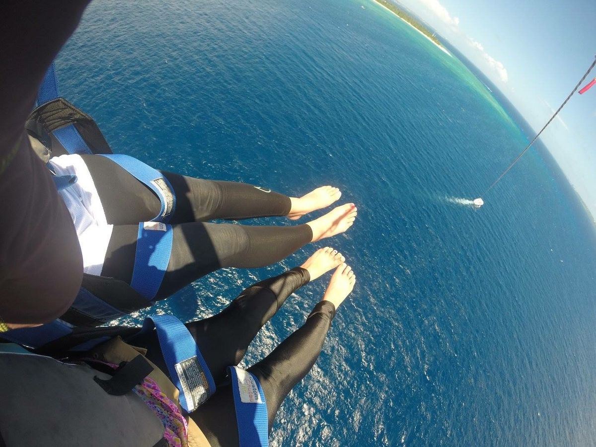 あっという間に空の上に到着。風で揺れることもなく、上では安定感が思った以上にありました。空から見る景色は・・・サンゴ礁の青い海で、本当に感動しました。高さが50m位だったのですが、下を見ても海・海・海なので全く怖さもありませんでした。