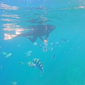 6才の娘を連れて、家族3人で参加しました。娘は一年振りのシュノーケルで、今回で2回目でした。天気もとても良くて、おさかなのたくさん見れる良いポイントと、青の洞窟の神秘的な光景に、家族全員ずーっと大興奮でした!めちゃくちゃイケメンのお兄さんが引率してくれて、娘もにこにこで懐いて最高に楽しそうでした!!!いただいた写真も動画も、全部満足です。本当に参加して良かったです!